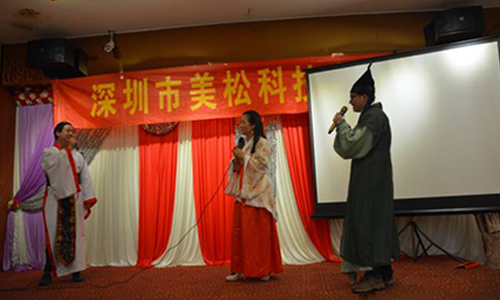 晚會(huì)節(jié)目精彩紛呈,高潮迭起,節(jié)目編排有張有弛,料點(diǎn)十足。在晚會(huì)節(jié)目進(jìn)入尾聲時(shí),2位來自俄羅斯的外國朋友—美松國外合作伙伴,也上臺(tái)給大家?guī)須g樂。他們用俄語為我們熱情高歌。俄語,雖然很多人聽不懂,但是我們美松人用打拍子的方式協(xié)同這位國外朋友獻(xiàn)出自己的熱情。最后用他們的表達(dá)方式祝愿美松走向更美好的未來,同時(shí)也期盼彼此之間有更多的合作。其實(shí),合作是必然的,我們美松科技的產(chǎn)品早已售往全國,遠(yuǎn)銷海外,相信在未來的日子里也會(huì)走得更順暢,為更多的客戶獻(xiàn)上更優(yōu)質(zhì)的產(chǎn)品。