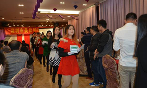 隨著優(yōu)秀節(jié)目競爭的結(jié)束,抽獎(jiǎng)環(huán)節(jié)再次掀起熱情的高潮。公司領(lǐng)導(dǎo)與員工親情互動(dòng),抽獎(jiǎng)活動(dòng)激動(dòng)人心,歌聲、掌聲、歡呼聲一直在會(huì)場上起伏蕩漾。其中最令人感動(dòng)的一幕是,為了感謝員工們一直以來對美松的支持與貢獻(xiàn),總經(jīng)理陳斌先生還特意為這些同仁們準(zhǔn)備了最特別的禮物--價(jià)值上萬元的名表各一枚。