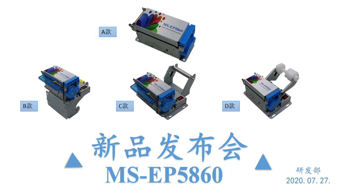 在7月的終章八月的伊始,美松公司召開新品發(fā)布會,繼4月發(fā)布的MS-EP5860之后,受到許多友商的關(guān)注及來自市場的呼聲,在初始機型的基礎上衍生出MS-EP5860系列產(chǎn)品來滿足廣大客戶群體需求。其中為了應對不同機器內(nèi)部情況生產(chǎn)的MS-EP5860系列,包括應對平板機型超薄機型誕生的MS-EP5860—V,更適用于排隊機、點餐機等等;同時設計添加了機身結(jié)構(gòu)更為緊湊的MS-EP5860-H,對比傳統(tǒng)58mm打印機而言機身結(jié)構(gòu)更為緊湊小巧,機身側(cè)面長度相較傳統(tǒng)結(jié)構(gòu)縮減三分之一;面對打印不干膠標簽需求的市場前提下研發(fā)設計出MS-EP5860-B,提供可調(diào)節(jié)紙軸以及應對多種規(guī)格標簽紙的出紙嘴,來應對更多富有挑戰(zhàn)情況下標簽打印需求。