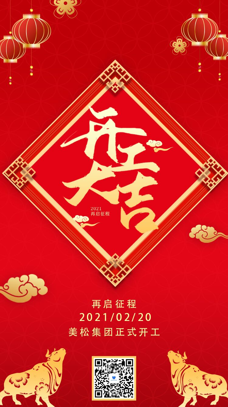 2021年2月20日,美松集團(tuán)正式開工的日子,董事長(zhǎng)陳斌先生攜全體員工祝福全國(guó)人民牛年:新春吉祥!牛運(yùn)亨通!牛氣沖天!