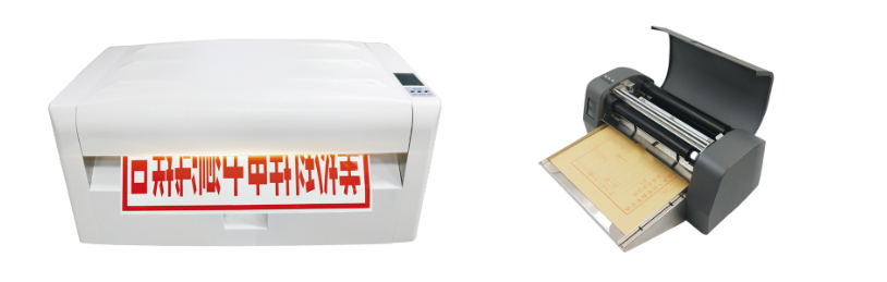 美松熱轉(zhuǎn)印打印機主要應(yīng)用于標(biāo)識打印機(下圖左)和卷宗卷皮、檔案袋、檔案盒封面打印機(下圖右)兩大類,