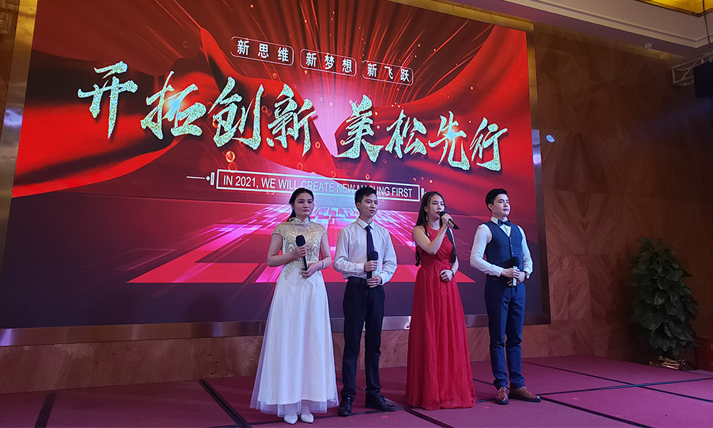 首先董事長陳斌先生上臺(tái)致開幕詞,回顧了美松2020年的心路歷程,肯定了2020年的所取得的輝煌成績,美松一步一個(gè)腳印,一年一個(gè)新高度。并對(duì)2021年提出了更高的要求,2021年我們要一手抓才,一手抓全;一手抓人才,一手抓安全;一手抓業(yè)績,一手抓發(fā)展;2021年我們要學(xué)習(xí)三牛精神,腳踏實(shí)地,深耕細(xì)作,堅(jiān)強(qiáng)不息,忠于職守;2021年我們要用業(yè)績說話,用數(shù)據(jù)說話,用態(tài)度做事,用品質(zhì)做人,打造美松品牌、美松文化、美松產(chǎn)品走向未來更多領(lǐng)域!