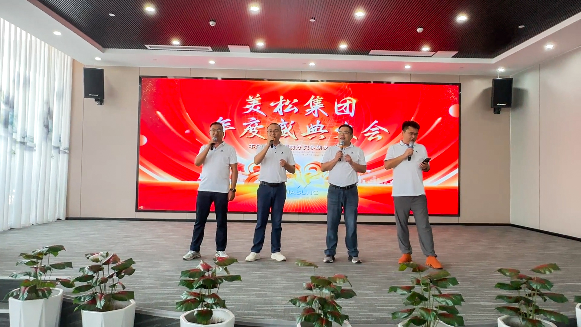 四位主持人整齊亮相開啟序幕,由美松智能銷售部總經(jīng)理李光輝帶領(lǐng)的” 四大金剛”上臺領(lǐng)唱美松主題曲《我的夢》,當(dāng)歌聲響起,現(xiàn)場激勵氣氛高漲。
