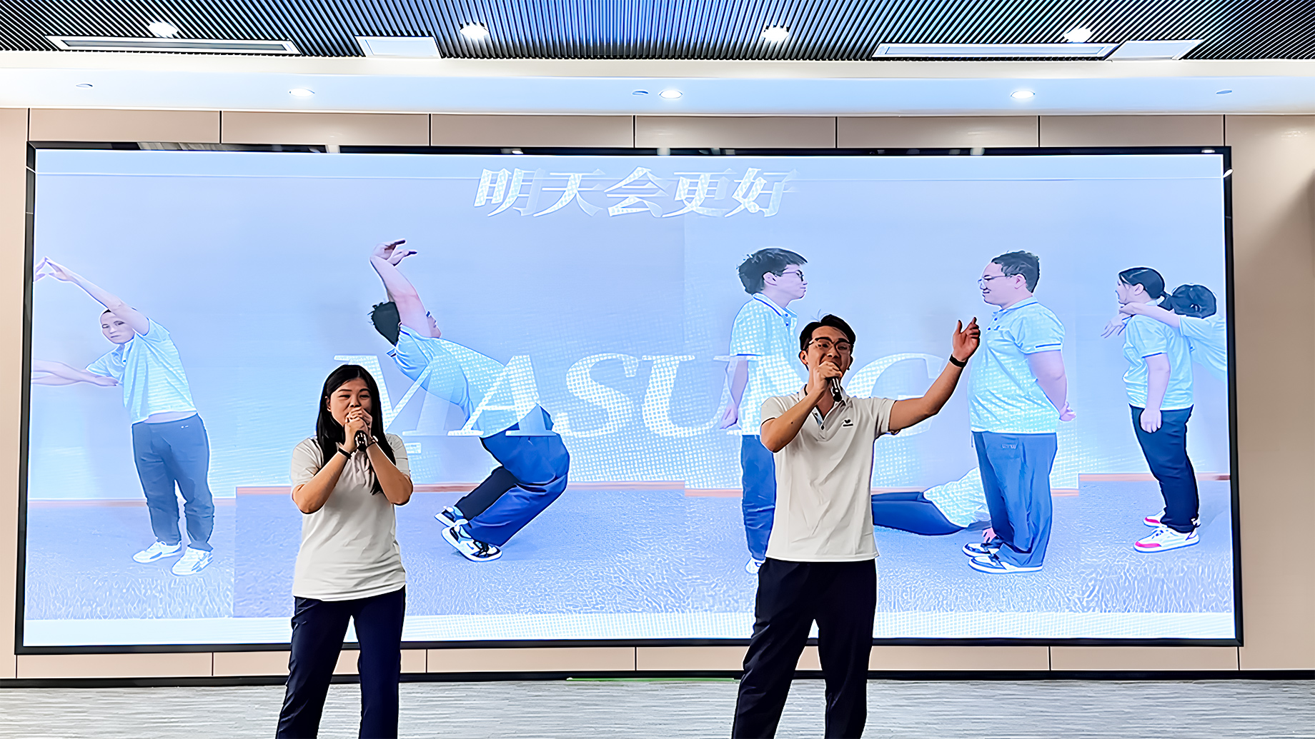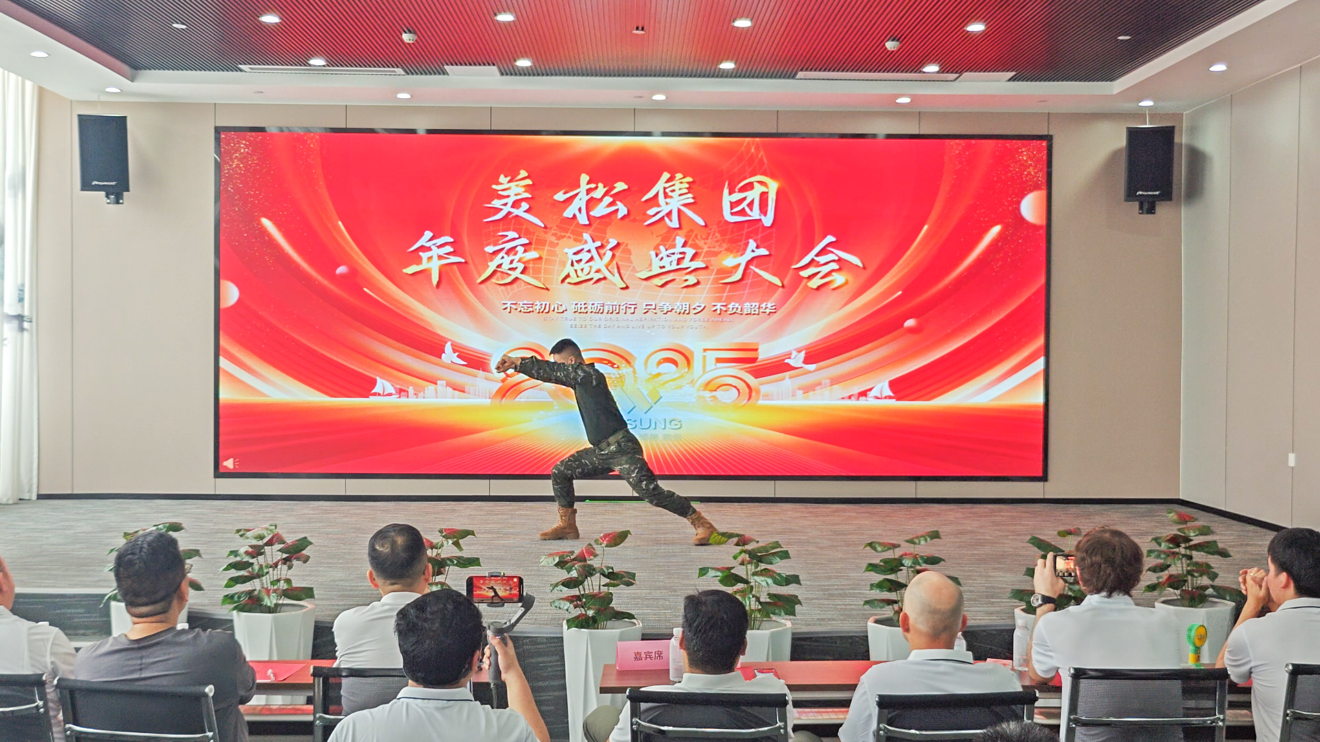整場節(jié)目表演活動都以“成長”為主線,貫穿美松個人成長、美松組織成長與打印機行業(yè)成長三位一體,強調(diào)“專業(yè)、創(chuàng)新、誠信、服務(wù)”的美松價值文化。璀璨舞臺上,一場跨越時空的視聽盛宴《無價烙印與美松傳承》-以負(fù)責(zé)人coco的身份獨白故事展開的一部震撼的宣傳片,通過光影交織的鏡頭語言,帶領(lǐng)觀眾穿越美松的成長歷程,19年的風(fēng)雨路程提醒著我們,真正的傳承不是停留在口號,而是在每一天的細(xì)微行動中繼續(xù)前行。無論是資深老員工,還是新加入的同事,都將在一起,把夢想變成可感知的現(xiàn)實。以“恒進(jìn)”的步伐,致敬那些日常里追求極致的人;以堅定的信念,迎接每一個新的挑戰(zhàn);因為只要我們同心,必將勾勒出“匠心鑄就信賴”的美松品牌內(nèi)核:明天會更好!隨著音樂的響起,全體美松人都加入了和聲,歌聲中既有對過往合作的感恩,也有對未來共贏的期許.“讓我們的笑容充滿著青春的驕傲,為明天獻(xiàn)出虔誠的祈禱!”大屏幕同步播放員工們自發(fā)用人體藝術(shù)形式展示的“MASUNG”LOGO珍貴影像,將現(xiàn)場氛圍推向高潮。這不僅是一場藝術(shù)盛宴,更是美松人對美松的深情告白:“無價烙印”象征著每個美松人與美松的深厚情誼;“美松傳承”寓意著未來攜手共進(jìn)的堅定承諾。而“無價烙印與美松傳承”更是我們美松打印人的合作價值與美松精神。