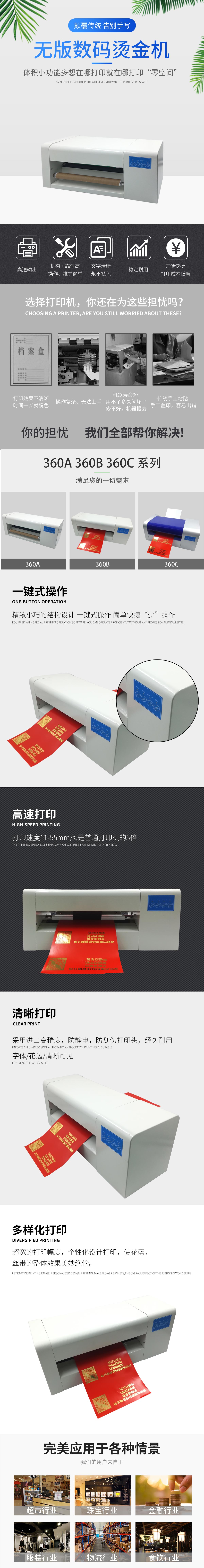 美松數(shù)碼無(wú)版燙金機(jī)印花機(jī)采用燙金熱轉(zhuǎn)印領(lǐng)先技術(shù),完全實(shí)現(xiàn)了單張自動(dòng)進(jìn)紙功能,省時(shí)又省力;無(wú)需制版直接打印電腦操作方便快捷.印花機(jī)主板采用全新智能四核CPU變頻控制,使打印頭徹底解決熱量堆積,延長(zhǎng)打印頭使用壽命五倍以上.印花機(jī)軟件控制可打印圖案文字照片電腦自動(dòng)識(shí)別位置無(wú)需挪動(dòng)介質(zhì),功率低,噪聲低,便于用戶(hù)使用.支持windows操作下的主流應(yīng)用軟件,例如: Coredraw, Word等國(guó)際通用軟件;直接usb,U盤(pán)輸出可隨時(shí)隨地操作,根據(jù)材質(zhì)需要可隨意調(diào)節(jié)行走速度;同一版面可打印多種顏色,獨(dú)有的定位板可確保每種顏色的打印位置準(zhǔn)確無(wú)疑.