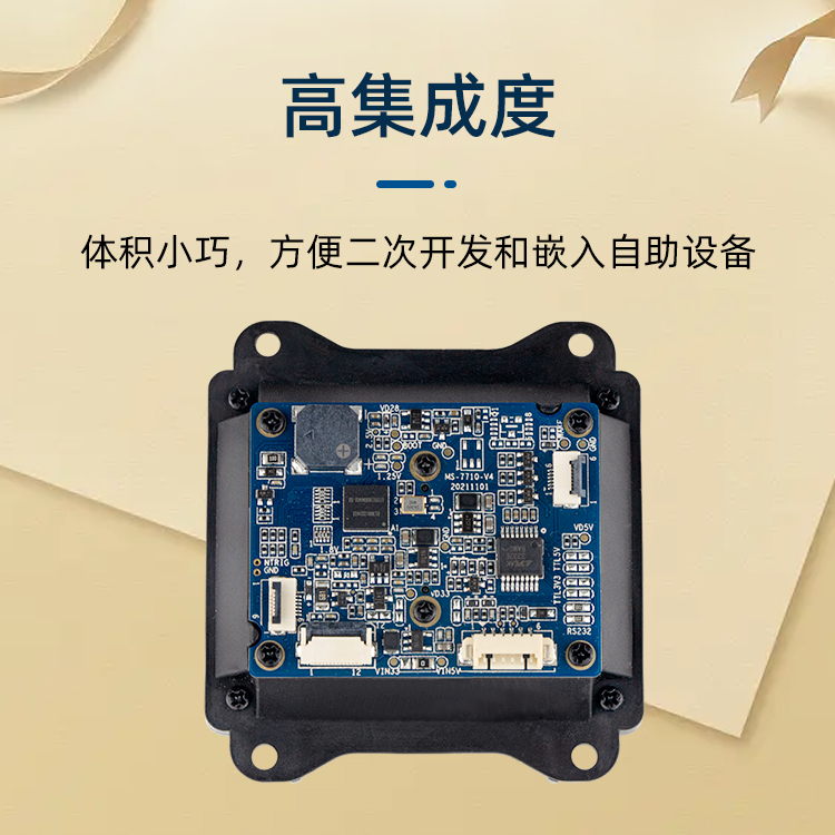 美松二維碼掃描模塊MS-7710采用遠(yuǎn)距離圖像傳感器,支持遠(yuǎn)距離識(shí)讀;針對(duì)陽(yáng)光和夜晚模式進(jìn)行優(yōu)化,全天24小時(shí)均可正常識(shí)讀,無(wú)人值守更省人工;兼容紙質(zhì)條碼掃描,為停車券應(yīng)用量身定制;寬溫-30~70度,南方北方輕松應(yīng)對(duì);豐富的接口適用各種傳輸方式;寬電壓設(shè)計(jì),供電更靈活,避免單獨(dú)再拉供電電源.圖像采集器與解碼板一體化設(shè)計(jì),重量極輕,集成度高,極易嵌入到各種產(chǎn)品應(yīng)用中,如公交掃描,自助機(jī)掃描,閘機(jī)掃描,取票機(jī)掃描,寄存柜掃描,智能門禁掃描.
