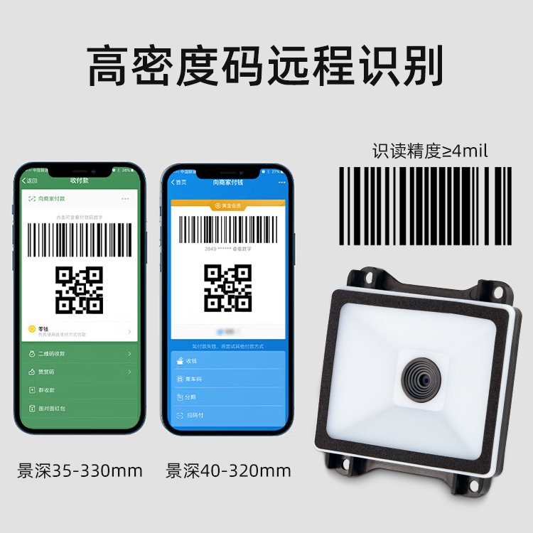 美松二維碼掃描模塊產(chǎn)品特性 1.快速識(shí)別紙質(zhì)和屏幕條碼,破損污損二維碼均能識(shí)讀 2.接口豐富,內(nèi)置RS232,USB,TTL5V,TTL3.3V 3.高集成度,21mm厚小機(jī)身,非常方便的用于高度集成應(yīng)用環(huán)境 4.綠色低功耗,產(chǎn)品使用壽命長(zhǎng);數(shù)據(jù)傳輸更加安全可靠 5.采用核心解碼技術(shù),可快速識(shí)讀各類紙質(zhì),塑料卡,屏幕條形碼,二維碼 6.圖像采集器與解碼板一體化 設(shè)計(jì),體積小,重量輕,可適應(yīng)各種集成應(yīng)用