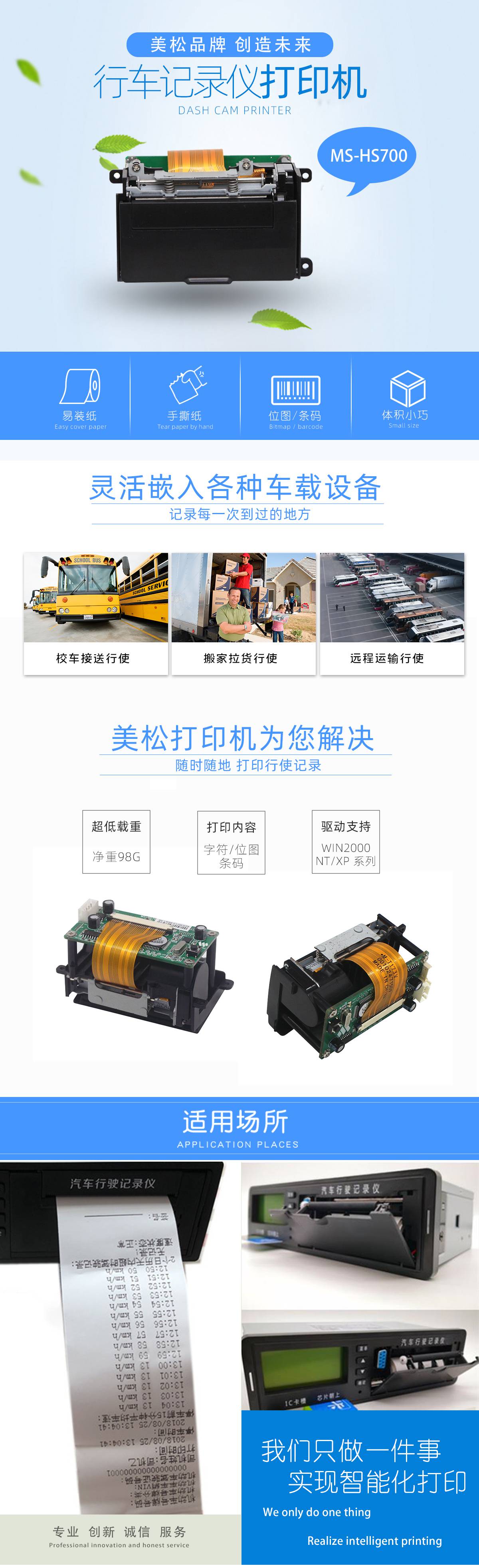 微型打印機(jī)介紹:美松根據(jù)微型打印機(jī)市場(chǎng)需求,自主研發(fā)一款58mm微型行車記錄儀熱敏打印機(jī),這款微小型打印機(jī)專為POS打印機(jī)開發(fā),嵌入在金融POS或者商業(yè)POS打印機(jī)可隨身攜帶,嵌入式微型打印機(jī)只需要簡(jiǎn)單安裝就能實(shí)現(xiàn)打印功能的打印模塊,微型熱敏打印機(jī)是醫(yī)療檢測(cè)、金融POS、商業(yè)POS等行業(yè)打印設(shè)備。