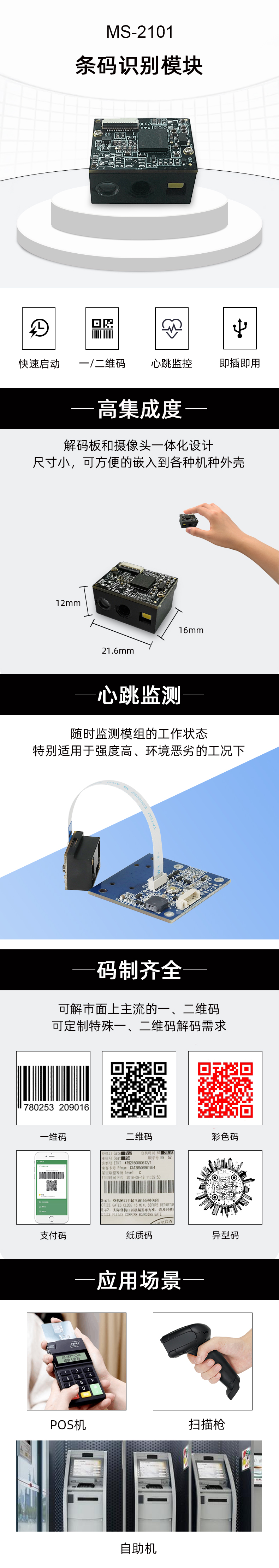 帶補光燈和指示燈,對紙質(zhì)條碼掃描效果好 采用廣角鏡頭,掃碼可以貼的更近,符合貼近掃描習慣 心跳監(jiān)測在線狀態(tài) 兼容市面上常見模組固定孔 選配轉(zhuǎn)接板可端子線連接RS232,TTL3.3V,TTL5V,USB,USB虛擬串口