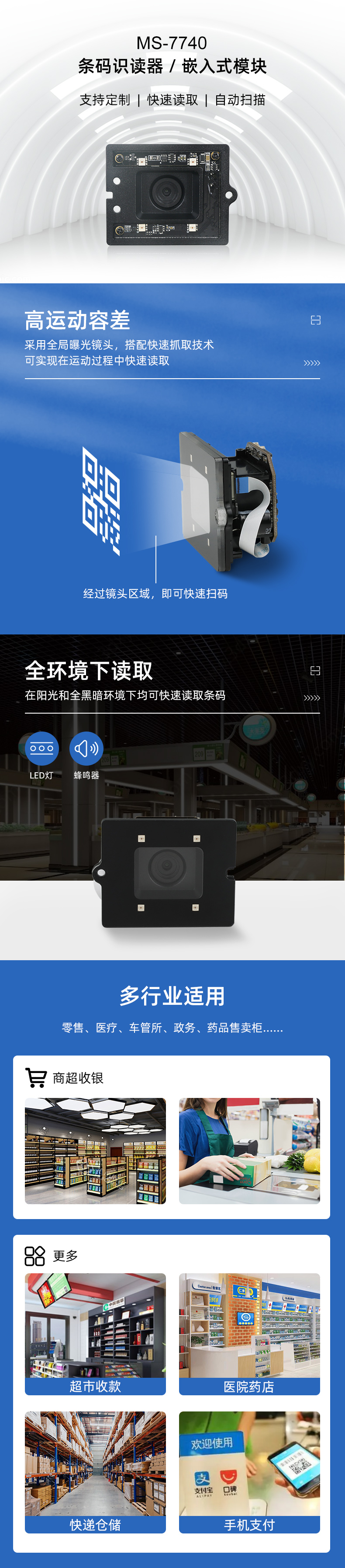 工業(yè)級紅色補(bǔ)光 高密度超長反光條碼讀取 寬壓3.6-6V 支持電壓復(fù)位 支持2M/S的運(yùn)動中讀碼 內(nèi)置RS232 和USB接口和蜂鳴器 支持陽光下和完全黑暗環(huán)境識讀