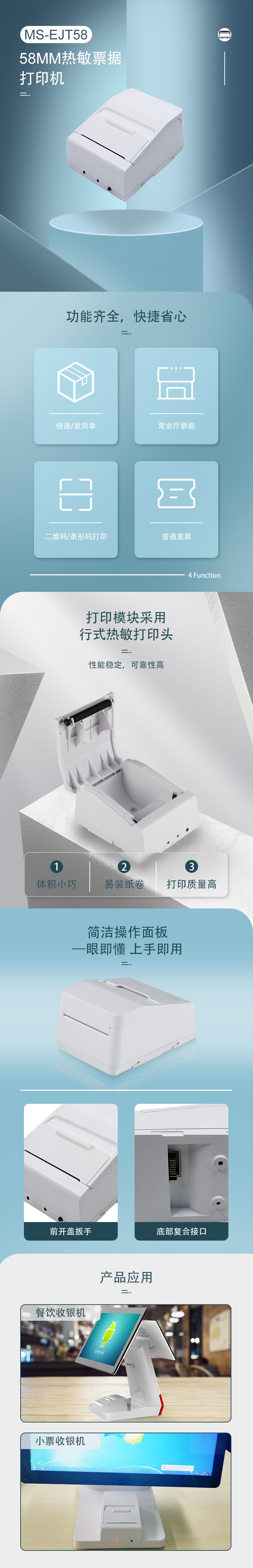 美松(MASUNG)MS-EJT58打印模塊采用行式熱敏打印頭, 它具有高速打印、噪聲低、可靠性強、打印質(zhì)量高、切紙厚度大、結構小巧等特點, 使安裝維修更方便快捷。
