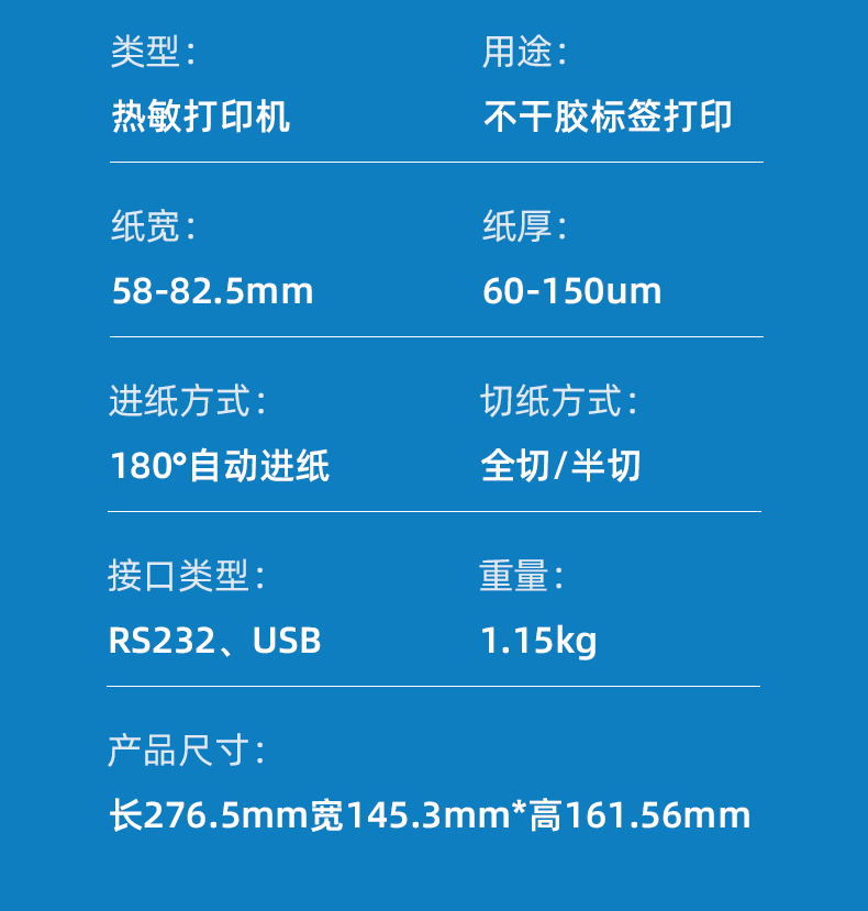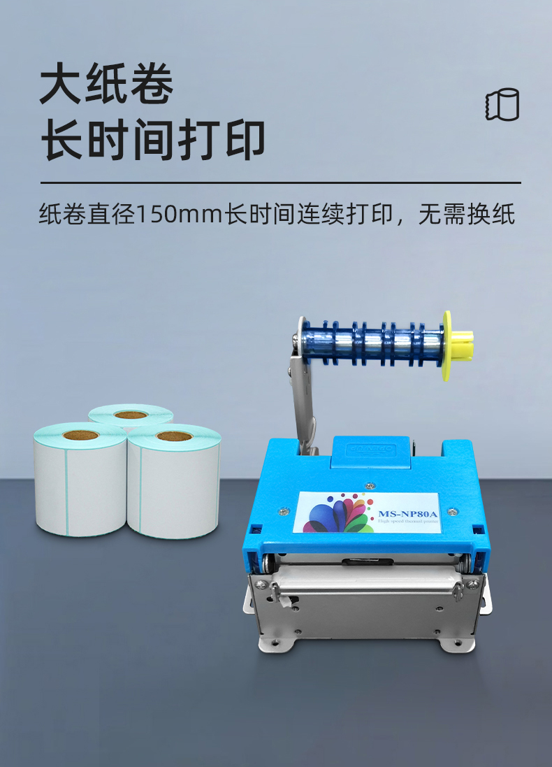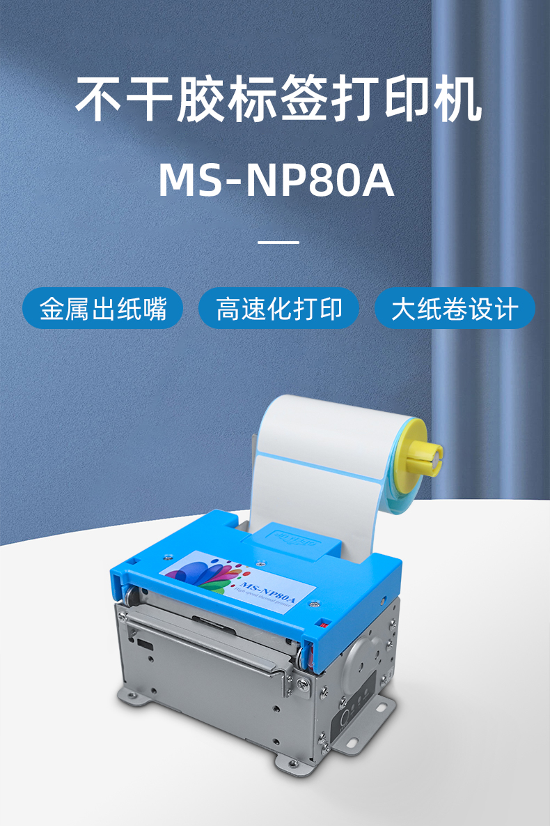 MS-NP80A是一款熱敏不干膠標簽打印機,支持紙寬60/80/82.5mm熱敏紙卷打印,具有高速打印、噪聲低、可靠性強、打印質量高、切紙厚度大、結構款式新穎時尚等特點,配有專用的塑料出紙口,配有防堵防拽專利技術出紙嘴,使安裝維修更方便快捷,實現(xiàn)智能化打印.