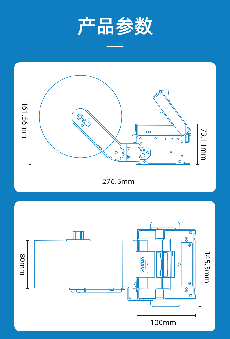 嵌入式打印機介紹:這款嵌入式打印機是80mm熱敏打印機,可打印82.5mm寬的熱敏紙,熱敏紙支架可圍繞打印機上下旋轉180°,高速打印,支持標簽打印,黑標打印和熱敏紙打印,配有專利技術防堵防拽出紙嘴,減輕出紙不順暢的問題,提高用戶體驗,減輕維護成本。