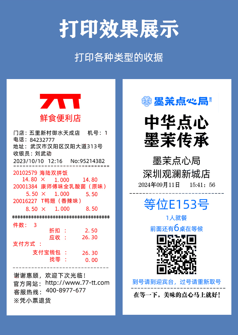 80mm小票打印機 熱敏后廚房前臺收銀餐飲打印機,支持前臺收銀與后廚菜單打印、打印機帶切刀自動切紙、USB/網(wǎng)口可供選擇。在零售、餐飲、服裝、寵物、烘焙、母嬰等行業(yè)擔任前臺收銀、后廚打印、點餐系統(tǒng)、銷售單據(jù),準備配貨、手機支付等功能的應用。
