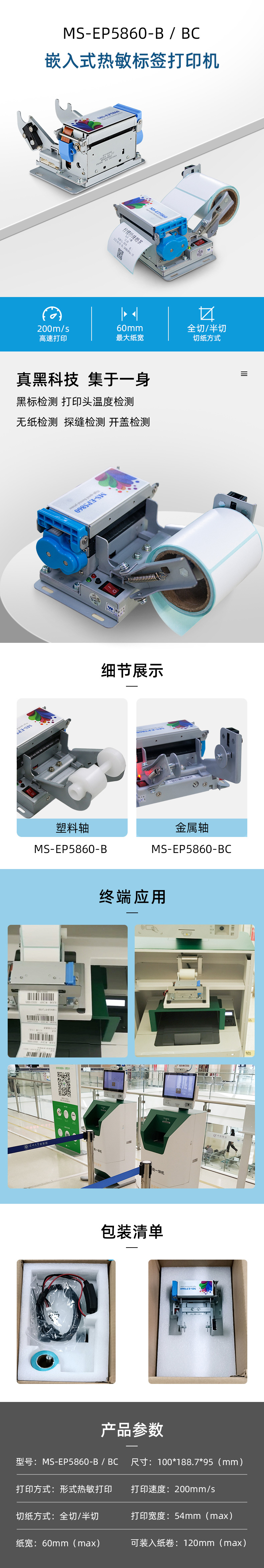 產(chǎn)品(型號(hào)):MS-EP5860-BC 58毫米至60毫米的熱敏標(biāo)簽打印機(jī)