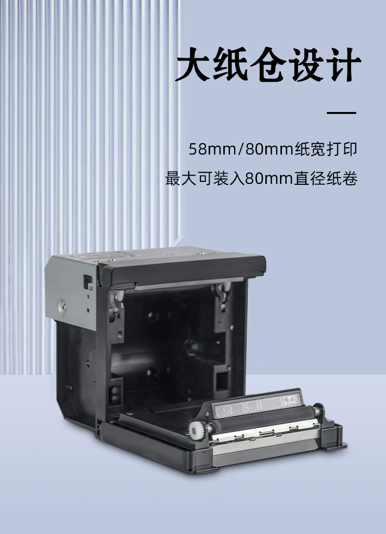 可選擇80mm和58mm的熱敏票紙進行打印,打印速度可達(dá)250mm/s