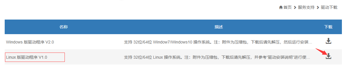 選擇 Linux 版驅(qū)動(dòng)程序,然后點(diǎn)擊下載。