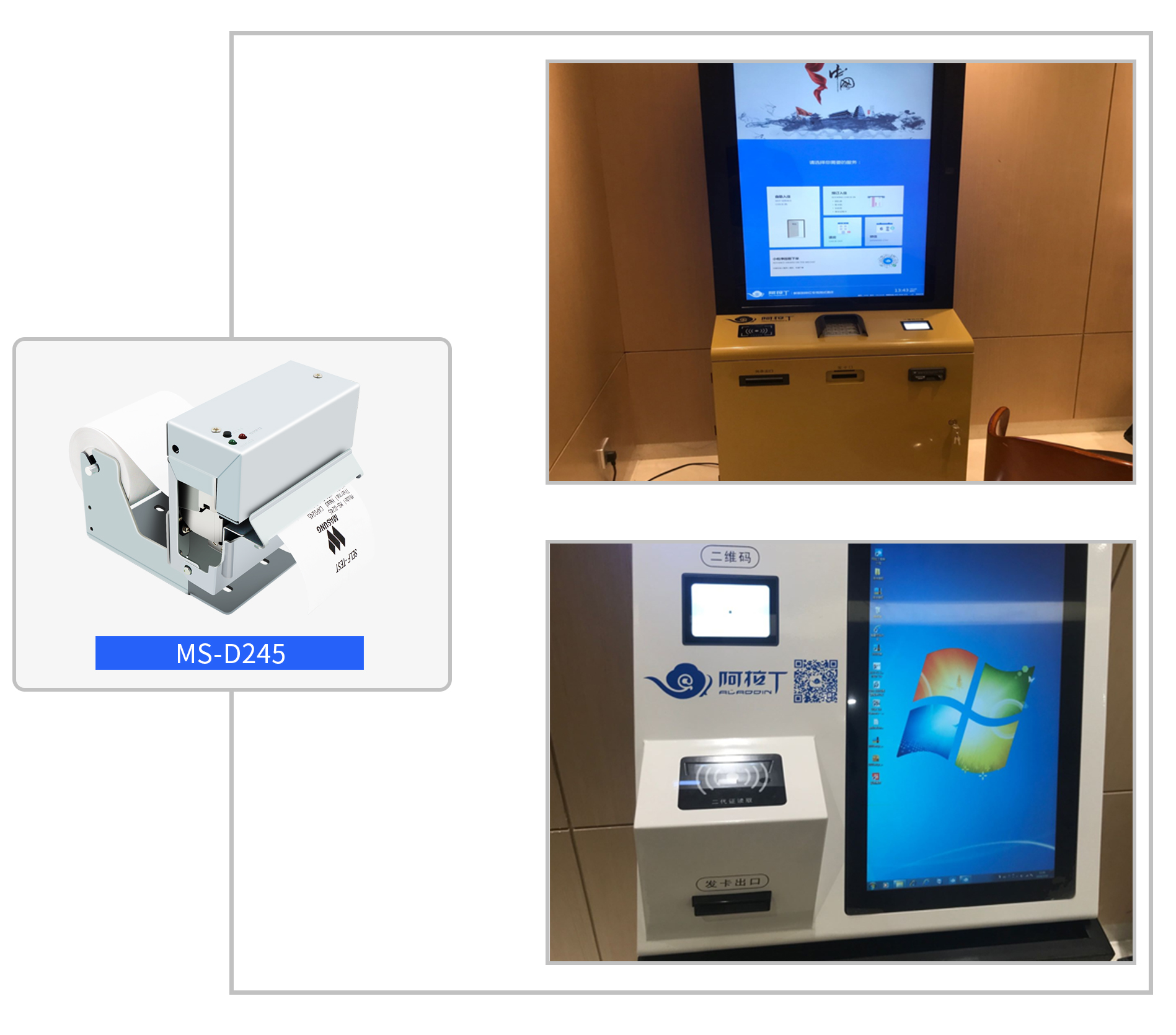 面對各類新型酒店服務的不斷發(fā)展,越來越多新型設備被應用在行業(yè)之中。美松公司通過展會接觸山東網絡技術有限公司,了解到目前酒店業(yè)的主要使用場景及應用要求,成功將 MS-D245 嵌入并批量應用。MS-D245 是由美松公司研發(fā)設計的第一代58mm嵌入式打印機,具有高速出票的打印速度,小巧靈活的外觀廣受好評。應用于合作智慧酒店大堂設備中,利用智慧酒店自助服務一條龍:預定,入住,續(xù)住,退房均可自助操作。針對各類型的智慧應用設備,美松公司具有豐富的案例經驗,為不同類型的智慧機器提供打印及掃描解決方案,滿足廣大智慧應用市場的發(fā)展需求。