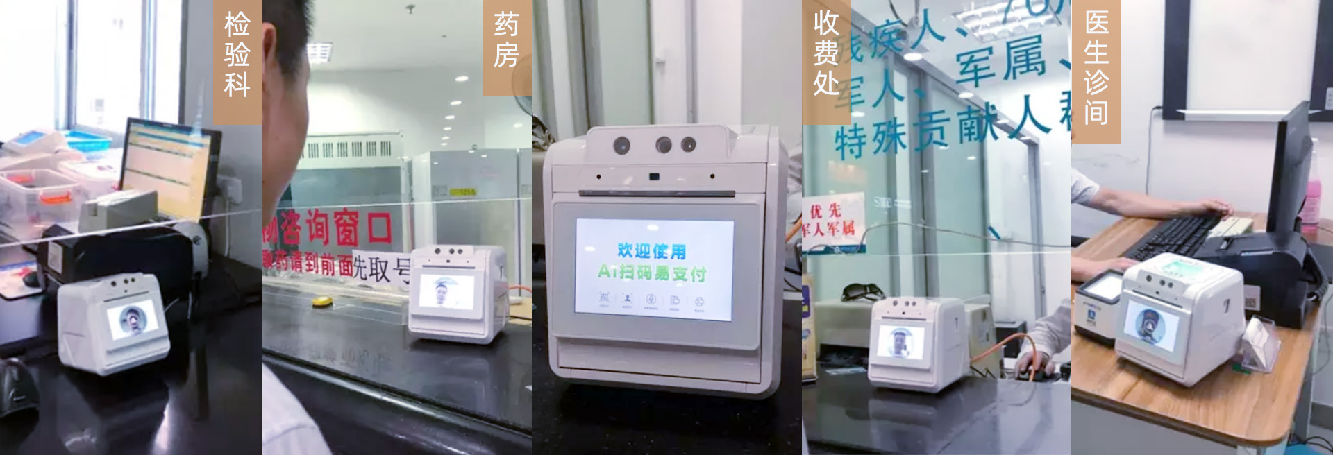 沒錯(cuò)就是它,MS-PSD80集AI人臉識(shí)別掃描打印收款的一體機(jī),患者對著人臉識(shí)別設(shè)備一“照”,他的信息便出現(xiàn)在醫(yī)生的電腦里。開化驗(yàn)單、檢查單、開藥,這些功能和刷就診卡是一樣一樣的,只是刷臉替代了就診卡。患者就診后,不管是收費(fèi)處、檢驗(yàn)科,還是一站式預(yù)約服務(wù)中心和藥房等其他項(xiàng)目的科室,都可以通過“刷臉”完成。