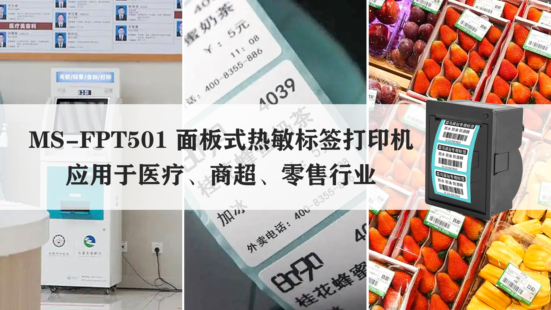 這就使得很多的自助設(shè)備廠家會(huì)選擇由美松生產(chǎn)的其它的嵌入式熱敏標(biāo)簽打印機(jī)來(lái)進(jìn)行標(biāo)簽打印,但是因?yàn)槠渌那度胧綗崦魳?biāo)簽打印機(jī)相比于自助面板式打印機(jī)來(lái)說(shuō),維護(hù)和換紙比較麻煩,所以廠家們都很希望美松能推出一款面板式的的熱敏標(biāo)簽打印機(jī),為了滿(mǎn)足廠家們的愿望,也為了填充市場(chǎng)的空白,美松研發(fā)出了新型的面板式熱敏標(biāo)簽打印機(jī)MS-FPT501。